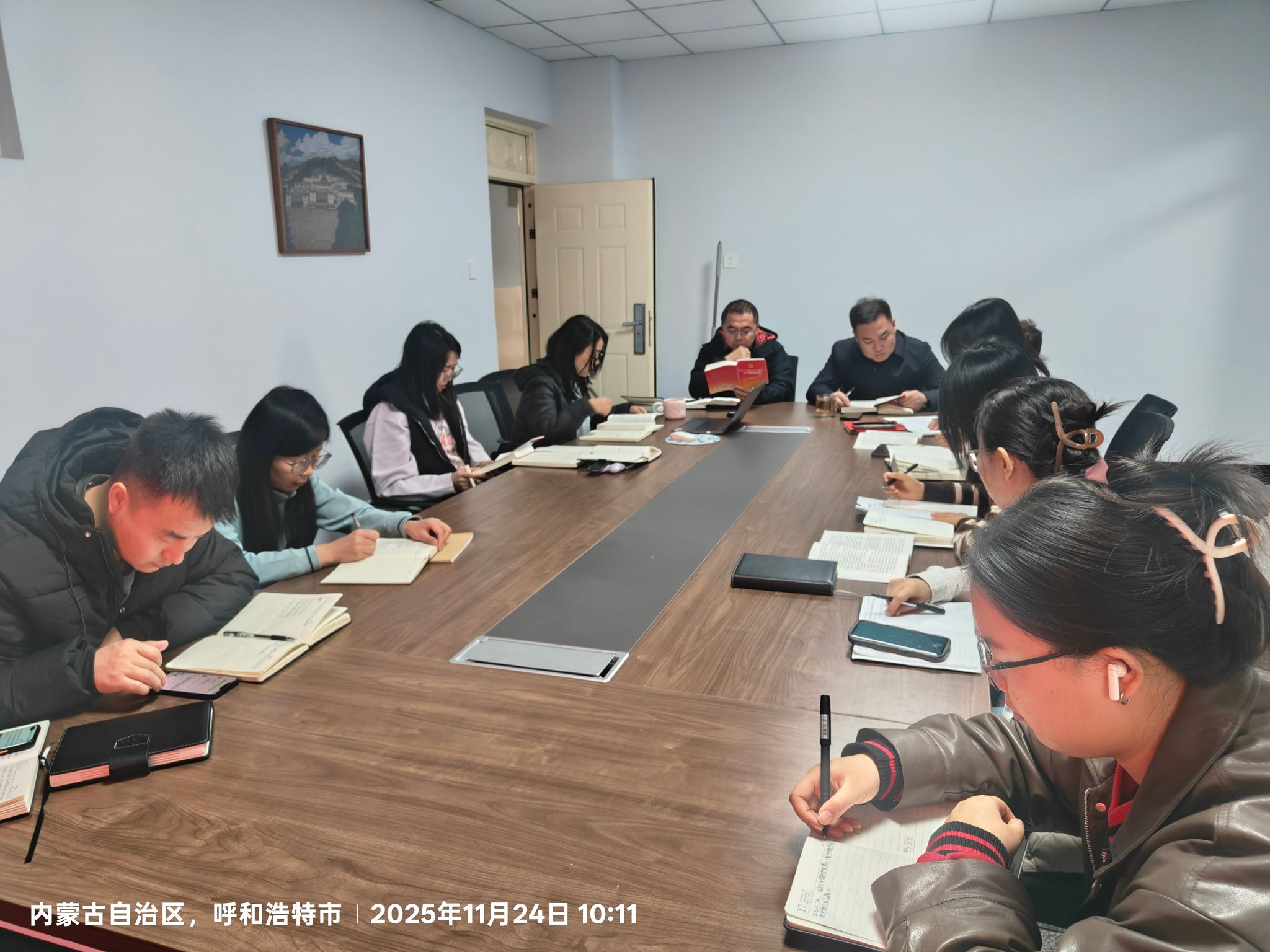 为深入学习贯彻中国共产党第二十届中央委员会第四次全体会议精神,把思想和行动统一到全会决策部署上来,2025年11月24日上午研究生院党支部组织全体教职工开展《中国共产党第二十届中央委员会第四次全体会议公报》专题学习会。会议由研究生院党支部书记白东义同志主持,支部全体党员参加学习。
